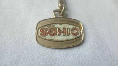 Sohio gas oil vintage metal keychain gold red white blue key chain