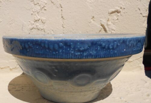 Title (ebay affiliate link): Antique Blue & White Stoneware Pottery Mixing Bowl