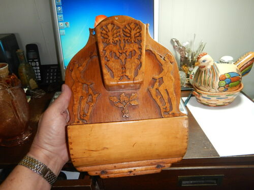 Very ornate comb box wall hanging people and animals odd item old estate