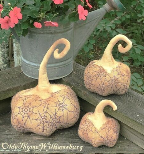 Title (ebay affiliate link): Set of 3 Primitive HALLOWEEN Burlap Pumpkins ~ Folk Art Harvest Halloween