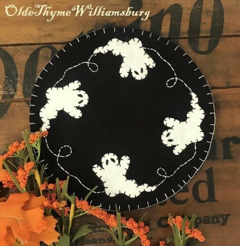Primitive Stitchery HALLOWEEN Ghosts Penny Rug ~ Fall Candle Mat