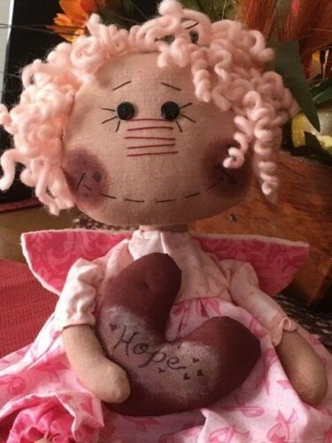 Title (ebay affiliate link): Primitive, Folk Art Angel, Raggedy Doll, Breast Cancer Awareness