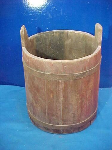19thc PRIMITIVE Wood WELL BUCKET w Orig RED PAINT