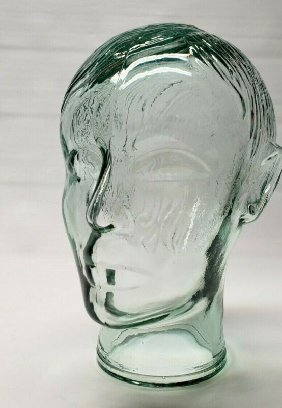Title (ebay affiliate link): Vintage Blue Green Glass 11" Mannequin Head Hat Wig Display Life Size Heavy Nice