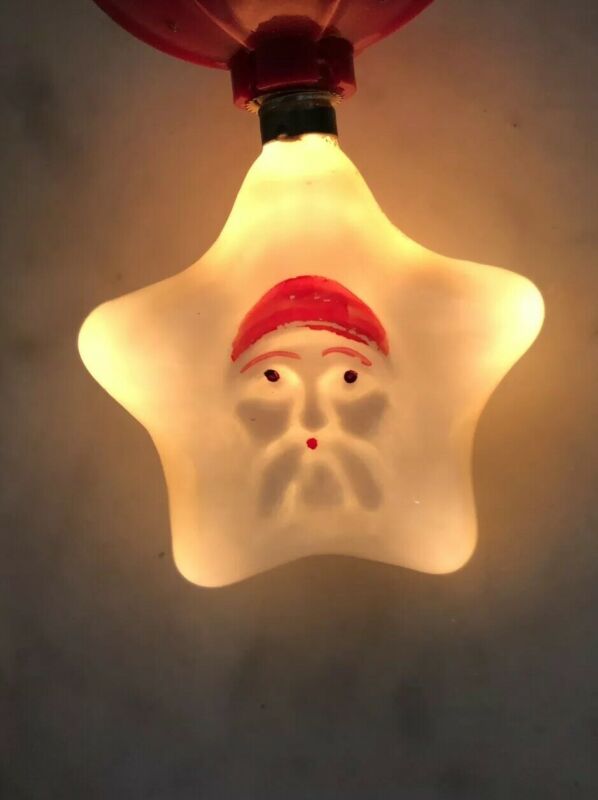 Rare Vintage Milk Glass Christmas Ornament Light Bulb Double Side Santa On Star