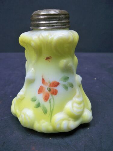 Antique EAPG Hand Painted Milk Glass Scrolls Salt Shaker