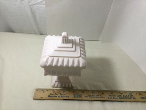 VTG JEANNETTE SHELL PINK MILK GLASS COVERED WEDDING BOX COMPOTE CANDY DISH