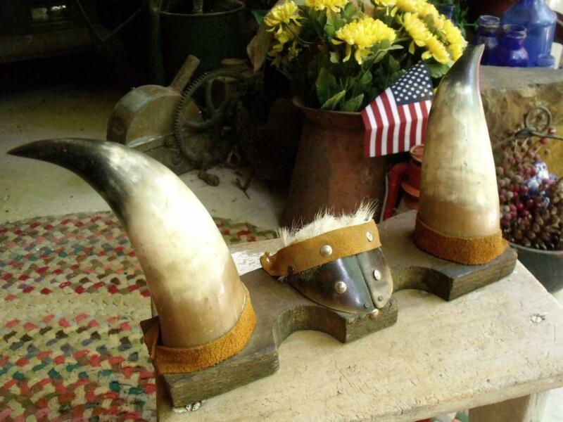 Title (ebay affiliate link): Rustic Primitive Vintage Cow Steer Horns Hoof & Hide Mounted on Wood Hand Made