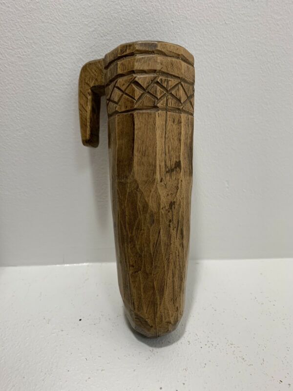 Antique American Carved Wooden Stone Holder Drinking Cup 19th century Primitive