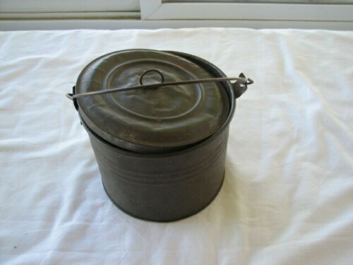 Title (ebay affiliate link): Vintage Antique Metal Tin Berry Bucket Lunch Pail with Bale Handle and Lid Cover