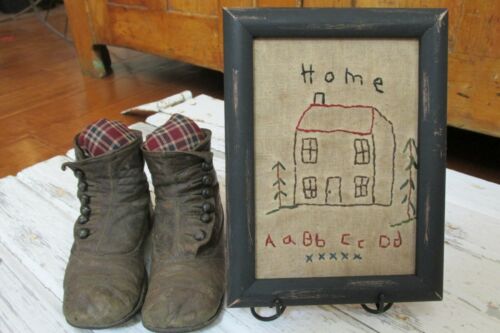 Child''s Antique Shoes, Sampler, Easel, Country, Farm, Primitive