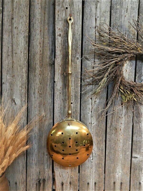 Title (ebay affiliate link): Antique Primitive Vintage Small Brass Bed Warmer 19"