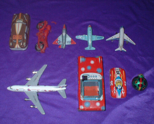 Title (ebay affiliate link): LOT OF 9 VINTAGE TOYS: 6 TIN MADE IN JAPAN CARS, AIRPLANES & LADY BUG, ETC