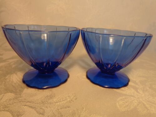 Newport Hairpin 2 Cobalt Footed Sherbets Hazel Atlas Depression Glass 1936-40 EX