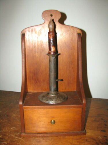 Title (ebay affiliate link): ANTIQUE HOG SCRAPER CANDLESTICK HOLDER & WOODEN WALL Hanging Stand