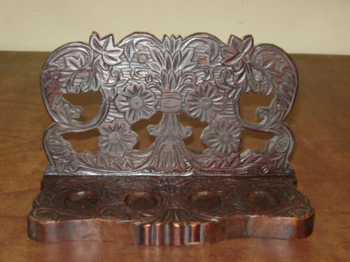 Vintage Hand Carved Wood Pipe Stand Rack 4 Pipes Black Forest Flower Leaf Wheat