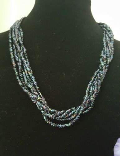 VINTAGE SILVER TONE W/ BLUE BEADS NECKLACE 23 1/2"