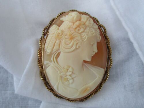 Title (ebay affiliate link): Vintage Antique Concave Carved Cameo Pin Brooch in 14k yellow gold bezel !