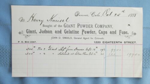 Title (ebay affiliate link): 1888 Denver Colorado Giant Powder Company Billhead-Giant Powder-Georgetown Colo.