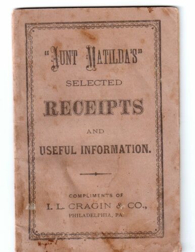Title (ebay affiliate link): ANTIQUE RECIPE BOOKLET 1890 AUNT MATILDA''S SELECTED RECEIPTS USEFUL INFORMATION