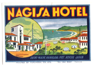 HONSHU JAPAN NAGISA HOTEL ART DECO LUGGAGE LABEL