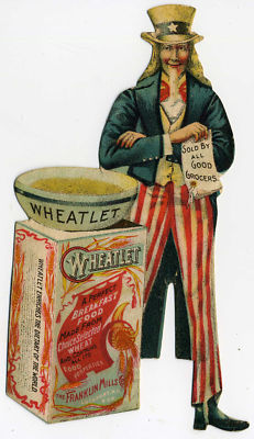 LARGE DIE CUT UNCLE SAM BESIDE WHEATLET CEREAL BOX