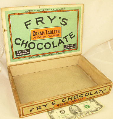 FRY'S CREAM TABLETS chocolate bars WOODEN box c1920