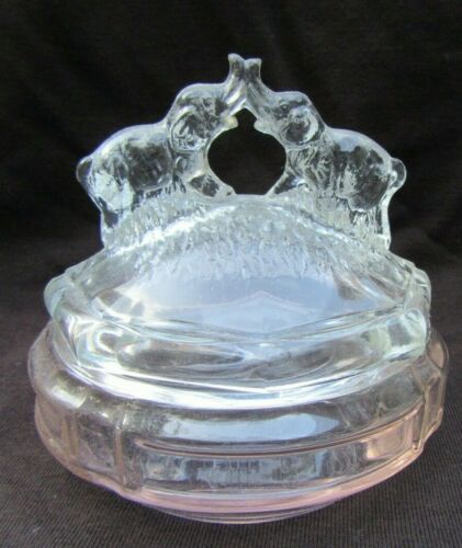 Fabulous Vintage Depression Glass Powder Jar with 2 Joined Elephants