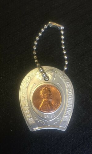ENCASED PENNY 1959 D Advertising Keychain Paddock Pontiac Auto Dayton Baldwin OH