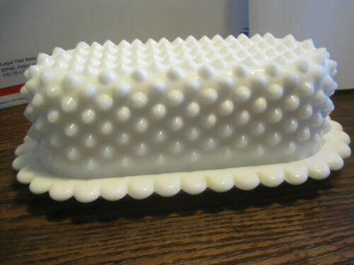 Title (ebay affiliate link): VTG Fenton WHITE Milk Glass Hobnail Covered Butter Dish W/Scalloped Base