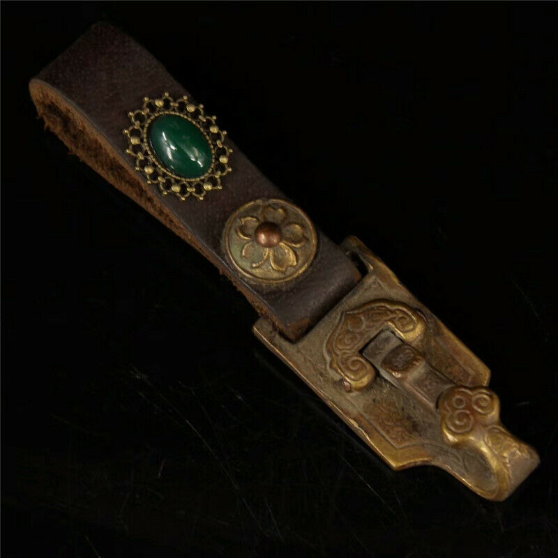 Title (ebay affiliate link): 4.92" Chinese Old copper inaly gem cow leather Handmade Belt buckle Keychain