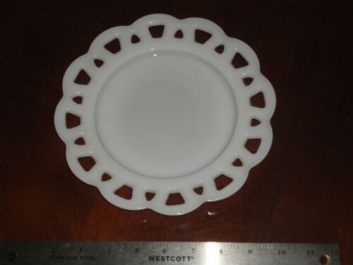 Title (ebay affiliate link): 8.25" Open Lace White Milk Glass Salad Plate Oak Hill Vintage
