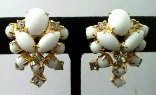 Title (ebay affiliate link): VINTAGE ESTATE HIGH END MILK GLASS RHINESTONE FLOWER 1 1/8" SCREW EARRINGS G860L