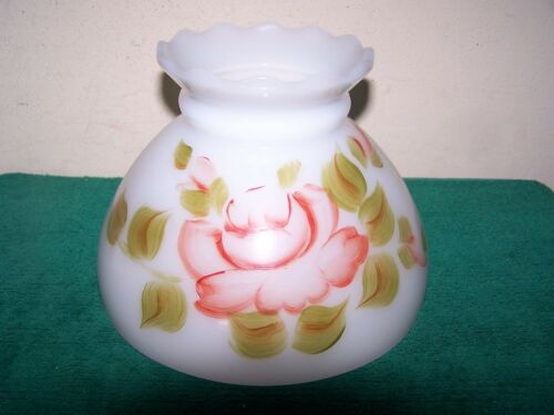 Vintage Hurricane Lamp Shade Milk Glass With Pink Design Flower