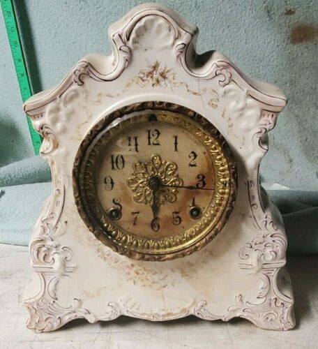 Porcelain Antique Clock Shelf Mantel Vintage 1800s
