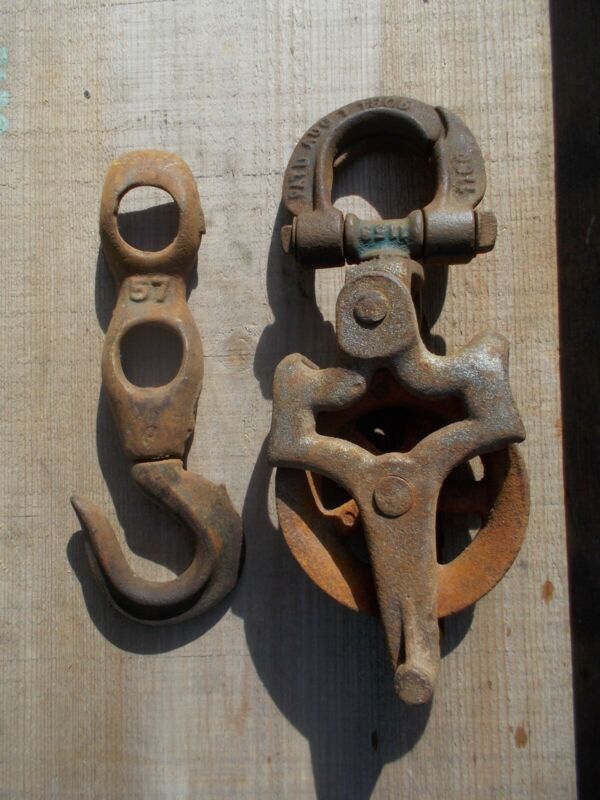 Title (ebay affiliate link): Antique Cast Iron 4" Pulley with Hook Pat''d 1905