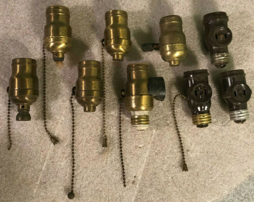 Title (ebay affiliate link): 9 Vintage Table/Floor Lamp Sockets Pull Chain Turn Key Brass Bakelite