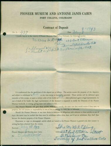 1943 Fort Collins,CO-Pioneer Museum & Antoine Janis Cabin Civil War Rifles Loan