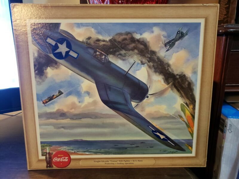 Title (ebay affiliate link): Vintage WWII Coca Cola Vought Corsair Cardboard Sign Antique