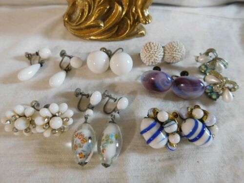 Title (ebay affiliate link): 8 Pairs of Earrings Vintage, Antique Screw On Backs Milk Glass, Rhinestone (ES7)