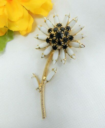 Title (ebay affiliate link): VINTAGE GOLD TONE MILK GLASS & BLACK CRYSTAL FLOWER BROOCH