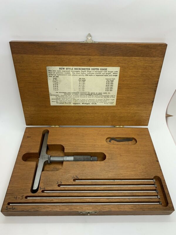 Title (ebay affiliate link): Vint Lufkin Rule Depth Gage Micrometer Gauge Machinist Lathe Mill Wood Box Case