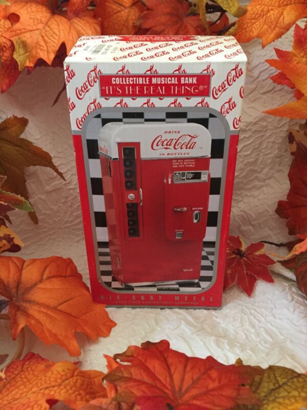 COCA COLA DIE-CAST METAL MUSICAL BANK VENDING MACHINE # 128910 W/BOX 7 1/4" TALL