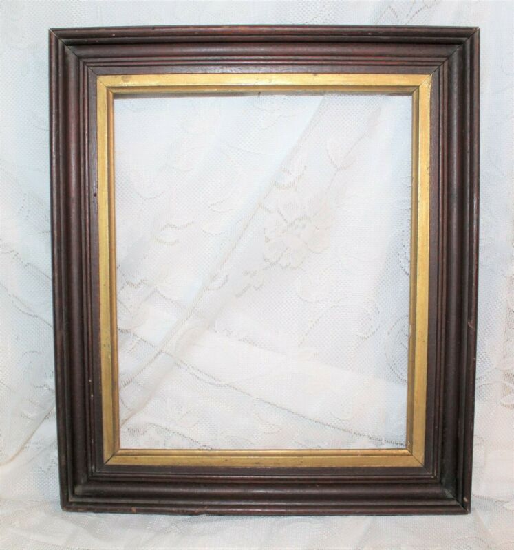 ANTIQUE WALNUT DEEPWELL PICTURE FRAME GOLD LINER EASTLAKE ERA