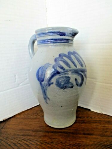 Title (ebay affiliate link): Antique Blue Floral Decorated Stoneware 1 Quart Pitcher - 7 3/4" -- Great Find!