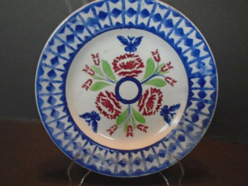 SPONGEWARE STICK SPATTERWARE PLATE, ADAMS BUTTERFLIES & FLOWERS