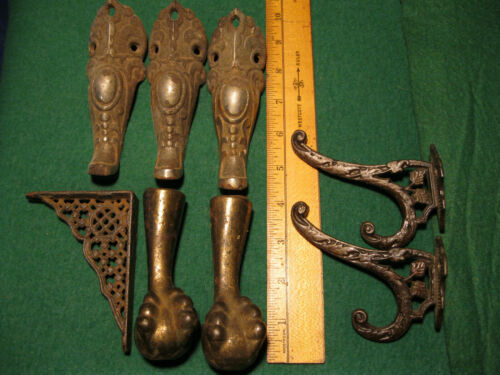 ANTIQUE VINTAGE CAST IRON BALL CLAW FEET PIANO FURNITURE + VICTORIAN COAT HOOKS