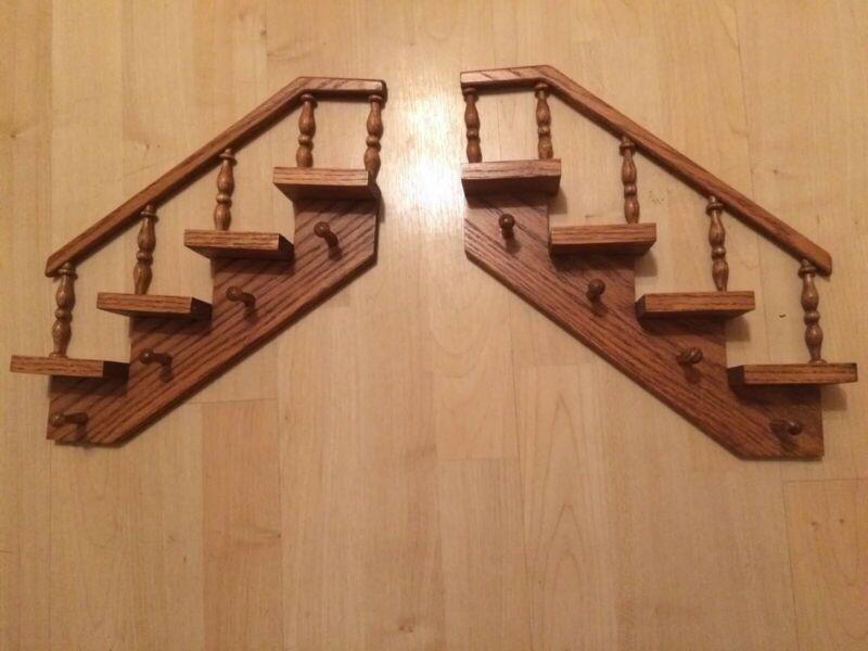 Vintage Oak Wooden Stairs Staircase Key Jewelry Medal Holder Knick Knack Shelf