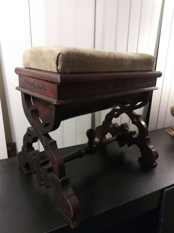 Antique Victorian Hand Crafted Organ/Piano Slipper Bench With Storage