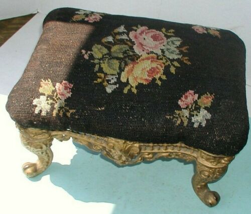 Title (ebay affiliate link): Early 1900''s Cast Iron Foot Stool with Neddlepoint Upholstery